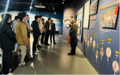 活动最后,师生共同参观了龙化石博物馆。作为国内首个以展示三叠纪海洋生物世界为主题的专题博物馆,龙化石博物馆浓缩了武汉地质调查中心自1962年成立以来在地质调查与科研方面的重要结晶。在王传尚研究员的讲解下,师生们系统参观了以“地球起源与生命演化”“海生爬行动物”及“恐龙世界”为代表的多个展区,观摩学习了来自湖北远安-南漳、贵州关岭等地的珍贵海生爬行动物化石。这些保存精美、种类多样的鱼龙、海龙等化石,生动再现了距今约2.5-2.0亿年前华南海洋生命的繁荣景象,揭示出地球生命演化的宏大历程。通过近距离观察化石标本、聆听专业讲解,同学们对地质科学的实践意义与古生物研究的价值有了更为直观和深刻的认识。