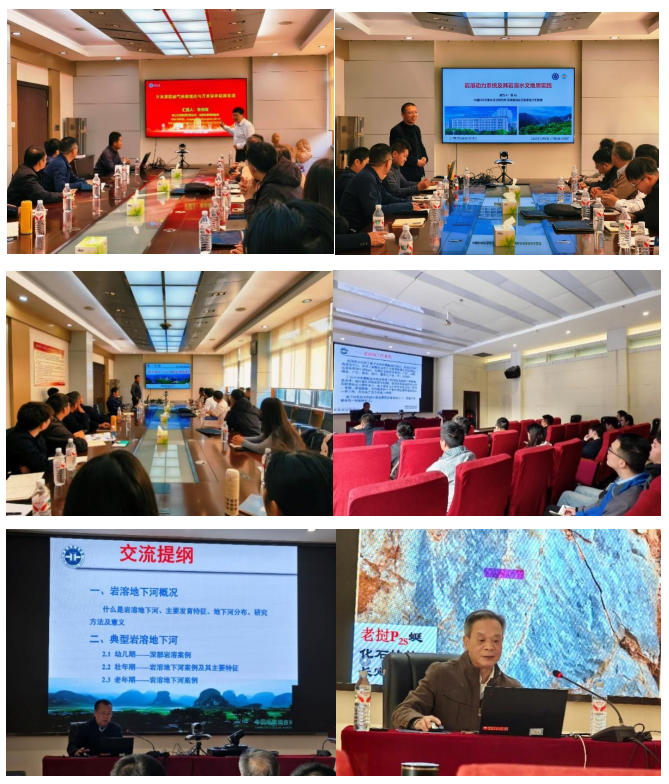 本次培训为期5天,内容涵盖学术报告、地质考察、野外勘探三大板块。12月5日-12月10日团队聆听了岩溶所概况及“十五五”科技创新合作规划、岩溶动力系统、万米深层油气地质理论等多场高水平报告,朱光有教授受邀分享万米深井钻探新发现,来自中科院的曾成老师向大家分享岩溶动力系统与水文地质实践工作,岩溶所水文地质专家易连兴教授实地教学并向我们带来西南岩溶地下河地质特征报告,广西区域地质行业专家李江老师围绕“台内找煤(铝)、滑脱带找气(金)、裂谷内找油(锰)”等关键议题展开深度研讨,岩溶所蒙彦研究员基于将今论古做了“岩溶塌陷形成演化模式及对油气成藏指示意义”的专题报告。