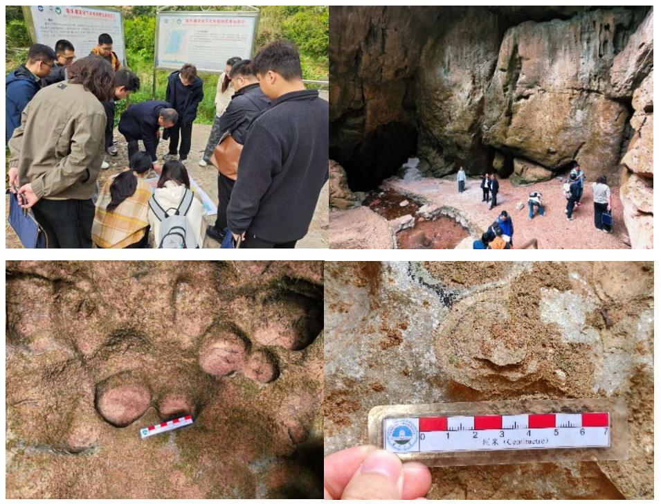野外阶段先后赴自然资源部海洋-寨底地下河系统、桂林最大地下河-冠岩地下河系统等4个野外试验基地,实地观察描述中生界碳酸盐岩地层岩性特征及岩相古地理、二级三级岩溶地貌特征及微地貌组合形态、不同尺度缝洞系统结构特征、岩溶水循环作用机理、区域走滑断裂分段特征及差异溶蚀规律、白云岩溶蚀机理及缝洞结构、生物礁形态结构及优质储层发育规律等岩溶地质现象。