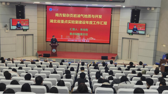 (通讯员 陈思钰 彭志刚/摄)2026年1月10日,“南方复杂页岩油气地质与开发湖北省重点实验室”建设年度工作汇报与专家咨询会在402永利集团(武汉校区)成功召开。会议旨在深入贯彻国家能源安全新战略,对标国家级重点实验室建设标准,凝聚专家智慧,明确发展方向,加速推进实验室高质量建设与内涵式发展。重点实验室学术委员会主任郭旭升院士为代表的校外50多位专家、学者及相关领导齐聚一堂,开展非常规油气资源的勘探开发理论与技术研讨;在专家咨询会上,与会专家就实验室的战略定位、建设目标、研究方向及运行机制等核心议题展开了深入研讨与交流。