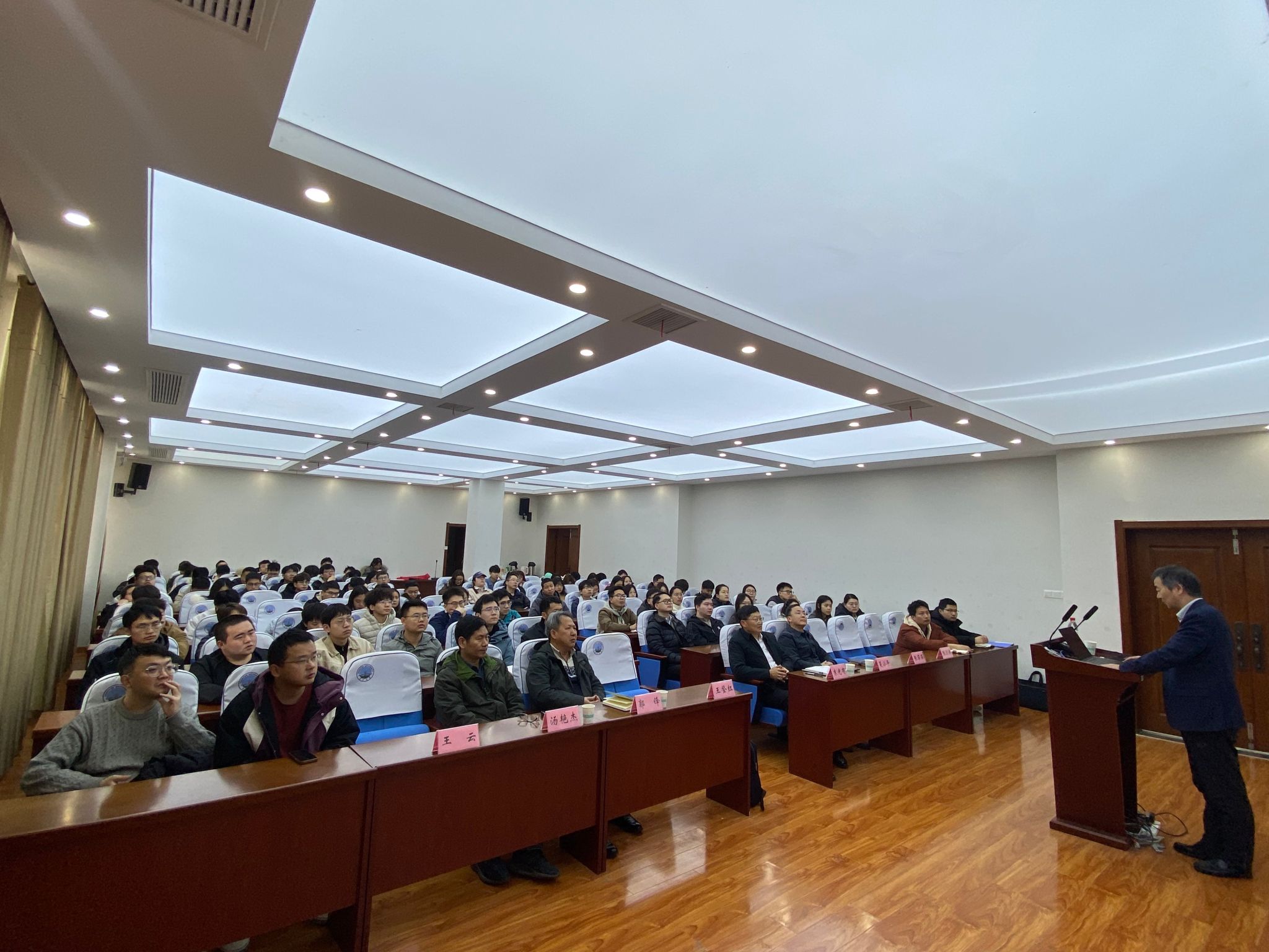 报告过程中,王登红所长多次结合现场展示内容向同学们提问,引导大家主动思考,现场互动频繁,气氛十分活跃。他结合找矿实践反复强调基础工作的重要性,勉励青年员工既要志存高远,也要脚踏实地,在资料、样品、观察、实验和野外实践中练就真本领。王登红所长激情昂扬地持续讲授两个半小时,内容丰富、层次清晰、案例鲜活、思想深刻,赢得了现场师生的阵阵掌声。与会师生纷纷表示,报告既有宏阔的国家视野,又有扎实的专业深度,更有打动人心的精神力量,是一堂兼具学术性、思想性与感染力的高水平报告。