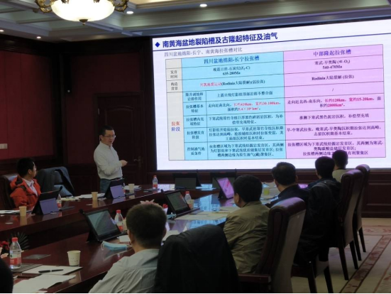 (通讯员韦志浩)2021年4月21日,中海油天津分公司南黄海盆地两个科研项目中期检查验收在石油科技大楼A区多功能会议厅举行。参加会议的有中海油天津分公司研究院李其正经理、牛成民地质总师、杜晓峰首席等专家,中国地质大学(武汉)梅廉夫教授和沈传波教授团队主要成员、402永利集团何幼斌教授和罗进雄副教授团队的主要成员参加了此次会议。本次会议由中海油天津分公司研究院黄海勘探室杨波主任主持。中国地质大学(武汉)的沈传波教授和402永利集团的罗进雄副教授分别代表各自团队汇报了项目的研究进展和所取得的阶段性成果。汇报结束后,与会专家充分肯定了两个项目所取得的阶段性成果,同时提出了存在的问题和下一步的工作建议。