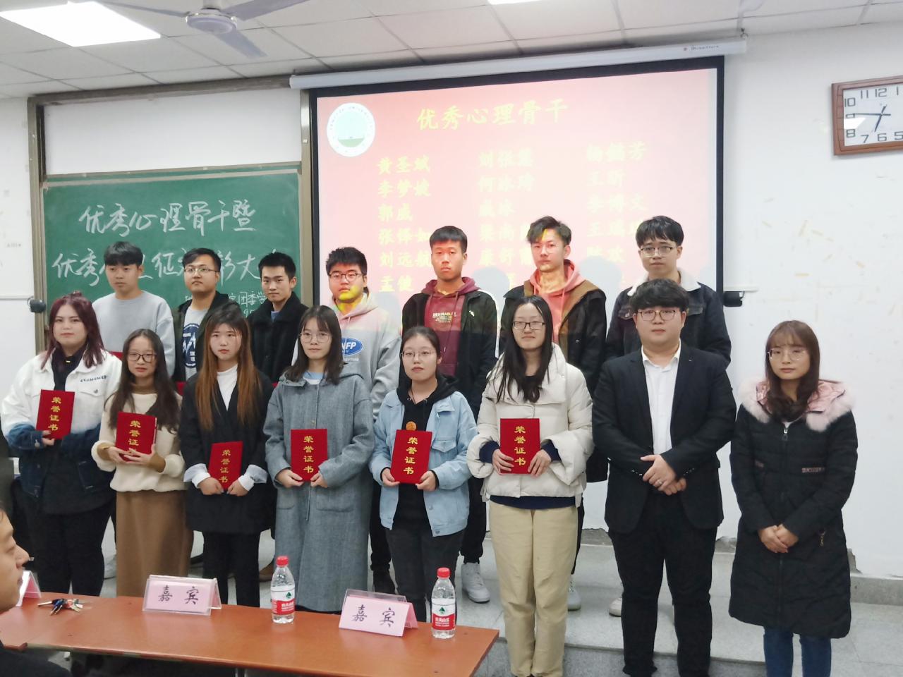 (通讯员丁思怡)11月18日晚18:30,402永利集团团委员工会心育部于A-103举办优秀心理骨干表彰暨“心声之路”征文表彰大会。地科院学工办副主任王宁、团委书记廖鹏程、辅导员罗小玉、兼职辅导员归航、院员工会副主席刘昊、刘佳琪、刘远航出席本次大会。