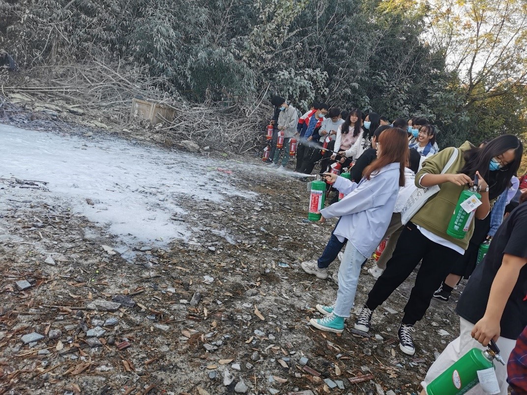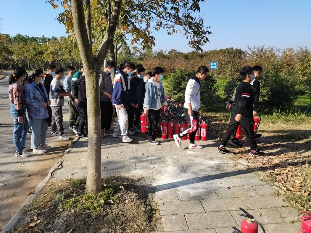 在宿舍安全检查的同时,公司20级部分班级在校区保卫处的组织下,进一步学习了火灾等突发事件的处理流程并实际操作灭火器,增强大家在消防事故中的互救与自救意识。