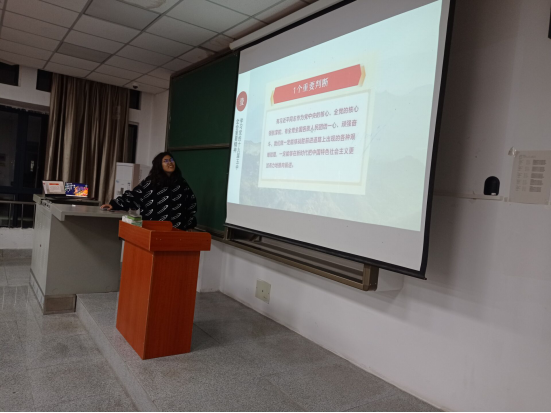 会议伊始,团支书向同学们讲解第十九届五中全会重要精神,从一个重要判断、决胜全面建成小康社会取得的10方面决定性成就、到2035年要实现的9方面远景目标、“十四五”时期经济社会发展的6方面主要目标、我国发展环境面临的深刻复杂变化、实现奋斗目标的12方面具体举措等方面入手介绍。