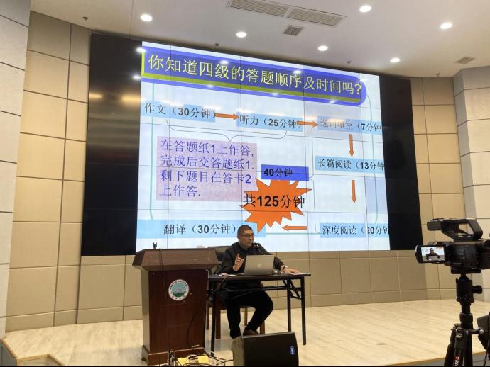 (通讯员 王佳颖)为助力员工顺利通过英语四级考试,公司分别于4月14日、19日、27日晚6点半在石油科技大楼学术报告厅开展了“新文道”讲座,三次讲座分别从阅读、写作、听力三方面进行了技巧解析。