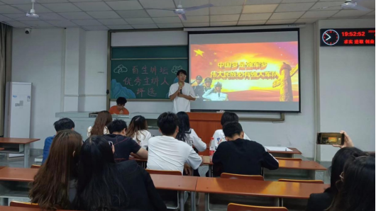 (通讯员 王铃淇)为进一步学习贯彻习近平新时代中国特色社会主义思想和庆祝建党一百周年,公司于5月5日晚7时在A教306开展以“青春心向党,建功新时代”为主题的百生讲坛活动。此次活动由团委员工会主席郑娜主持,员工会全体部长参与此次活动。