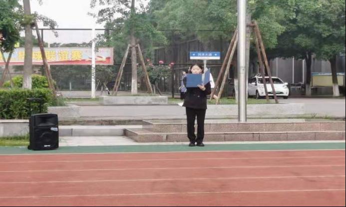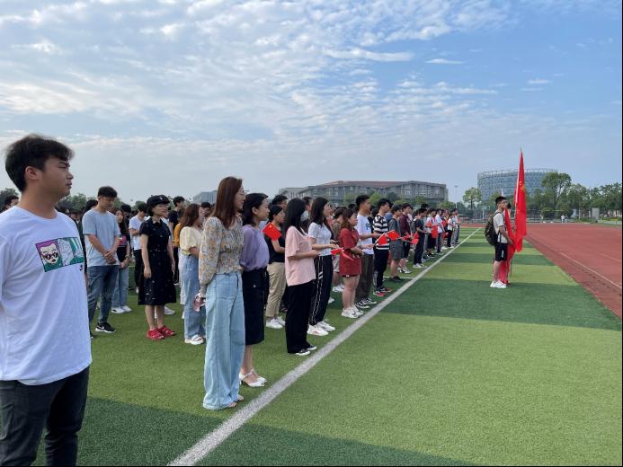升旗仪式开始前,全体师生进行“唱红歌”环节。在资工22004班和院员工会同学们的带领下,全体同学满怀热情,先后齐唱了《国家》和《闪闪的红星》,两首歌曲,嘹亮的歌声响彻整个操场。