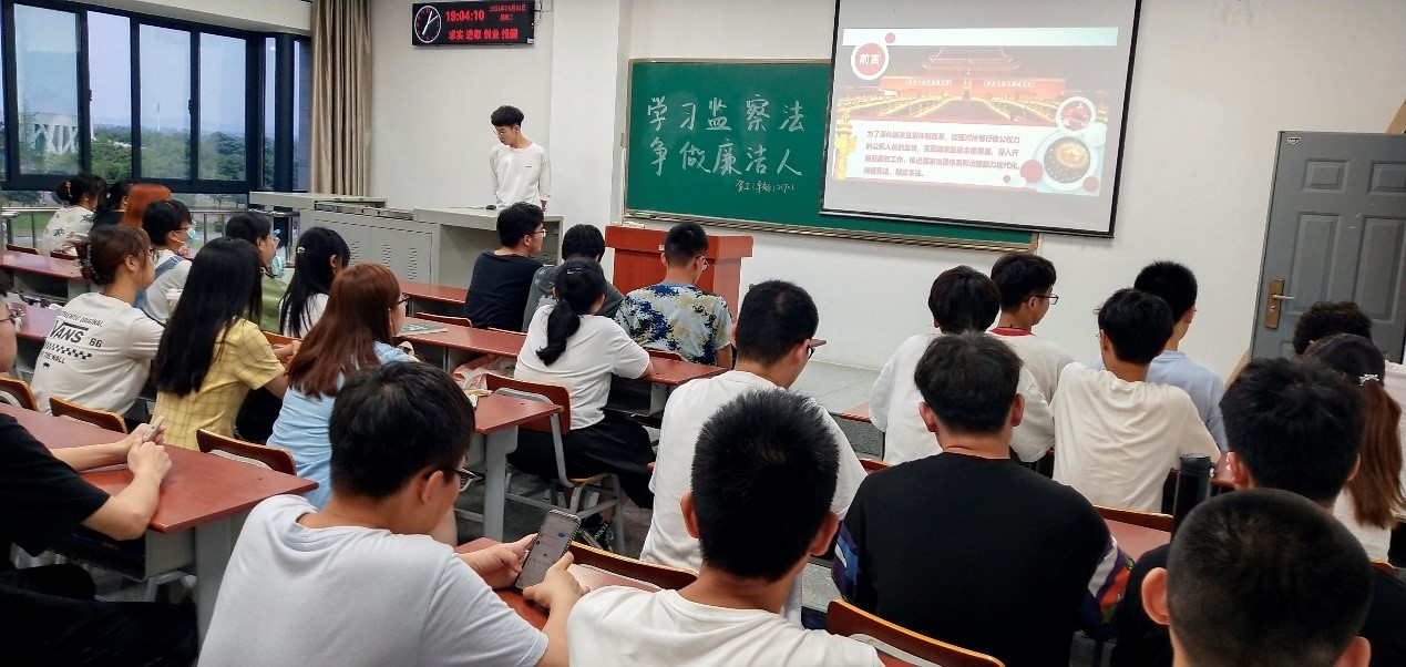 (通讯员 方经忠)《中华人民共和国监察法》的制定出台,为反腐败工作开创新局面提供了重要政治保障和法治保障。为进一步做好监察法学习宣传教育工作,公司决定在2021届毕业生中深入开展 “学习监察法,争做廉洁人”活动。为响应公司号召,公司2017级毕业生在年级辅导员的组织下,于6月1日在各班教室展开了以学习《国家监察法》为主的主题班会。