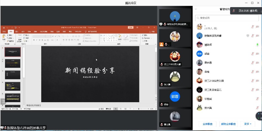 首先,孔祥睿同学从新闻的定义为同学们总结出新闻的特点,并依次为同学们介绍了新闻的结构以及注意事项,加深了同学们对新闻的总体理解。随后,同学们前期所撰写的新闻稿为例,孔祥睿同学现场指出并详细地分析了稿件的问题以及修改方案。最后,潘志远老师进行分享会总结,并向同学们提出暑期社会实践的进一步要求。