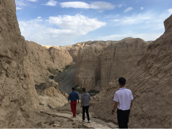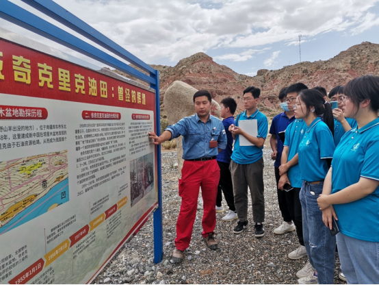 首先,我们到达了第一站——依奇克里克油田。它位于新疆南部,塔里木盆地北缘、天山南麓大涝坝区域。1958年,这里建成新中国在塔里木盆地的首个油田,是塔里木盆地石油勘探史上的第一座里程碑。1987年,依奇克里克成为中国第一个废弃的整装油田开发基地,累计生产原油120万余吨。依奇克里克从一片荒芜到可以容纳3万多人的小镇,是我们的石油先辈就地取材,依靠着报效祖国的一腔热血和不惧困难的精神,一铁锹、一铁锹建设起来的。他们在野外勘探难度极大,工作任务繁重的情况下,历经千辛万苦,克服重重困难,终于成功发现地下油气藏,开采出了宝贵的油气资源。老一辈石油人的艰苦奋斗、拼搏奉献、不惧困难,愿在艰苦地区扎根,愿为祖国石油献身的精神,既为我国的油气勘探工作积累了丰富的经验,更为后人留下了一笔宝贵的精神财富,令全体队员动容、获益良多。
