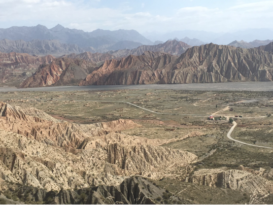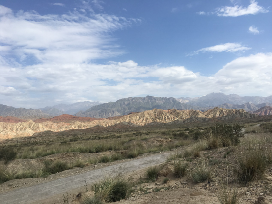 原本枯燥乏味的两个小时车程,却因窗外的美景让所有人兴奋起来,一路上的山川风景让队员们感叹山河的壮观,惊叹新疆自然风光的瑰丽。车队穿过蜿蜒河谷,驶过崎岖山道,窗外重山迭里,色彩斑斓,风景如画。这窗外飞逝的美景每一刻都在震撼所有人的心灵,没有人不感叹大自然的鬼斧神工。