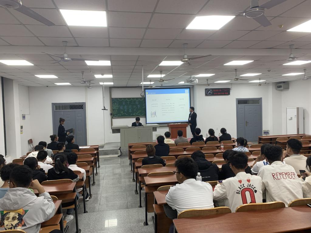 然后,由宿建部干事涂志威进行了对宿舍文化节的内涵和其他内容丰富活动的介绍。他着重介绍了三个主体活动“五家同创”、“一战到底”百科知识竞赛和“欢天喜地”游园会。即将开展的是“五家同创”,同学们通过报名参加五家评选,再进行答辩评选出五星寝室。还可以投稿我们寝室的小故事,展现我们寝室和谐温馨的氛围。通过涂志威同学的介绍,同学们对宿舍文化节活动有了深刻印象和更进一步的了解。