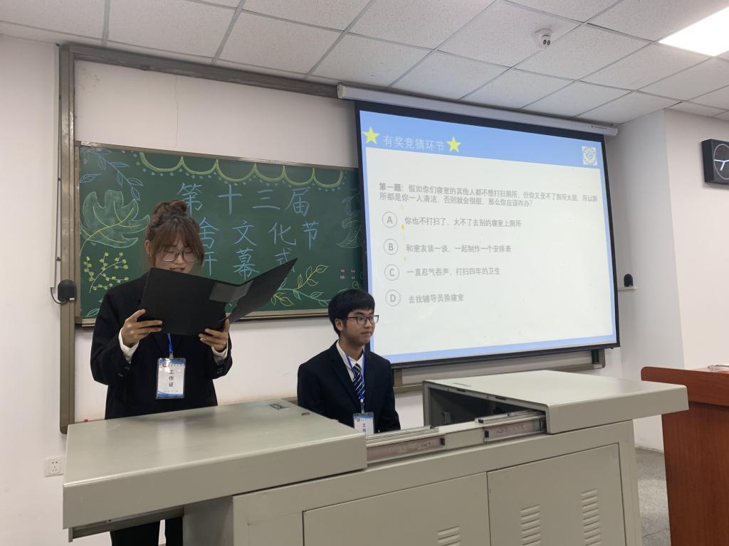 随后,本次开幕式的主持人宿建部干事王静进行关于寝室安全问题的有奖竞猜环节,在场的同学们积极踊跃举手,既活跃了现场的氛围,又调动了同学们参赛的热情。