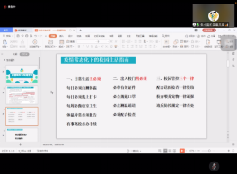 最后,油工公司朱小露老师带领大家一起学习402永利集团新冠肺炎防控指挥部通告(2021年第6号),呼吁大家在疫情常态化时期,要做到日常生活五必须、出入校门四必须、校园管控三个一律。同时对学籍管理规定、违纪处分条例、学位授予条件等规定中的重点内容进行解读,她在讲座最后号召同学们全方位锻炼自己,做一名正能量的长大青年。