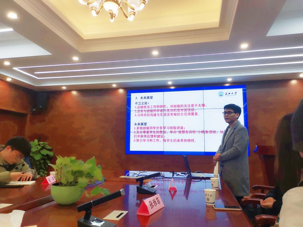 会议最后,王老师在总结发言中说道:“希望班导们不忘初心,在帮助他人的过程中收获成长”,并为班导们颁发奖品以资鼓励。地质22102班班导何一鸣感触颇深:“通过今晚的交流,我再一次深刻认识到班导作为’引路人’在同学们学习、生活中扮演的重要角色,进一步明确职责,相信在大家的共同努力下,新生们可以取得更好的成绩,成就更好的自己”。
