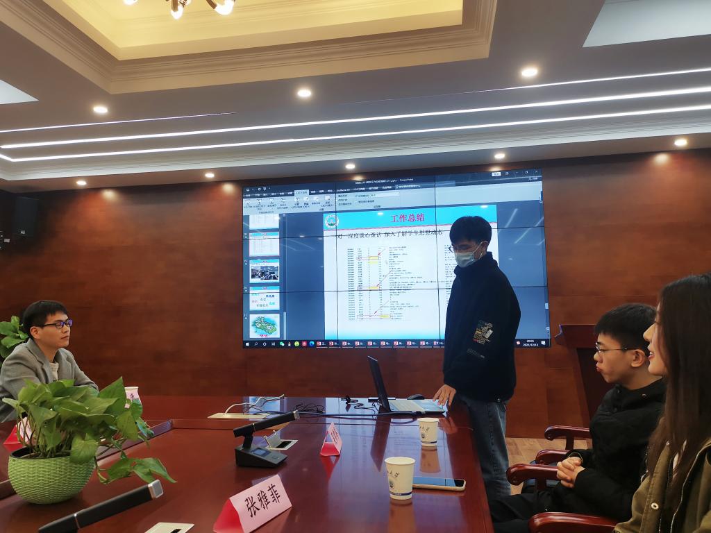 在简短的自我介绍后,地物公司三位嘉宾分别分享自己带班的经验体会,讲述了送诊发热员工、找高年级新疆籍员工帮助新生老乡更好的适应本地气候等问题的事例,及对“班导、班委配合”等方面的思考。随后公司班导依次上台,通过PPT用数据、图文生动展示了新生入学以来的学习、生活情况以及班导们在引领团学工作、班级团建、学风建设等方面的特色方法,包括每天发布“军训日记”、利用班团会为班内同学庆祝生日加强班级凝聚力、用“群作业”功能收集截图保证青年大学习完成率、自编地学知识小测验提高学习积极性、坚持陪伴早晚自习将学风渗透在言行举止中……各种别出心裁的做法让大家在交流中,有了新办法,新收获。分享后班导们就自己工作中的问题,积极提问交流,直到九点半还意犹未尽。