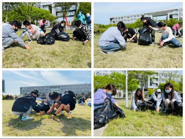随后,全体同学在草坪一头站成一排,3-5人一小组,团队合作,开始除草作业。虽然责任区域大,杂草多,但同学们没有被困难吓倒。由于使用的最原始的除草方式,整个拔草过程并不轻松,大家的双手都粘上了泥土,汁液,没几分钟不少同学脸上的汗水不停滴落,虽然很辛苦,但毫无怨言。整个除草现场热情高涨,大家斗志满满,经过一个半小时的努力,草坪便焕然一新,十分平整。