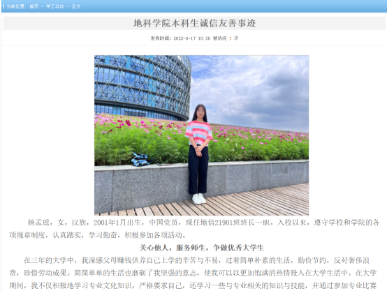 为进一步激发争做诚信老员工的自豪感和使命感,公司积极开展“诚实做人、诚信治学、诚信就业”的先进典型评选工作,在各年级积极组织优秀员工进行申报,选拔出杨孟瑶等4名同学为代表的诚信友善典型,通过公司官网进行广泛宣传, 引导广老员工理性消费、珍视诚信、勤奋有为,营造人人讲诚信、崇尚诚信、友善关爱的育人氛围。