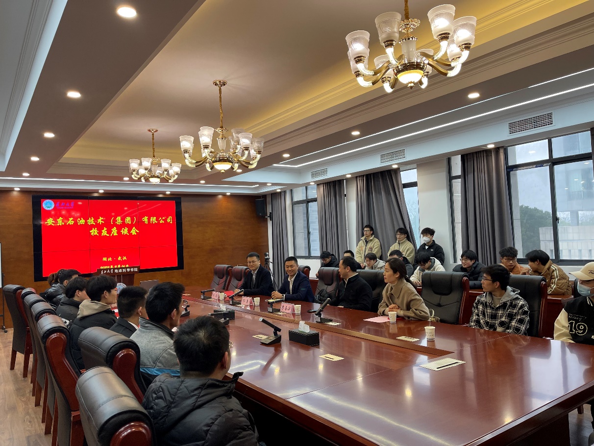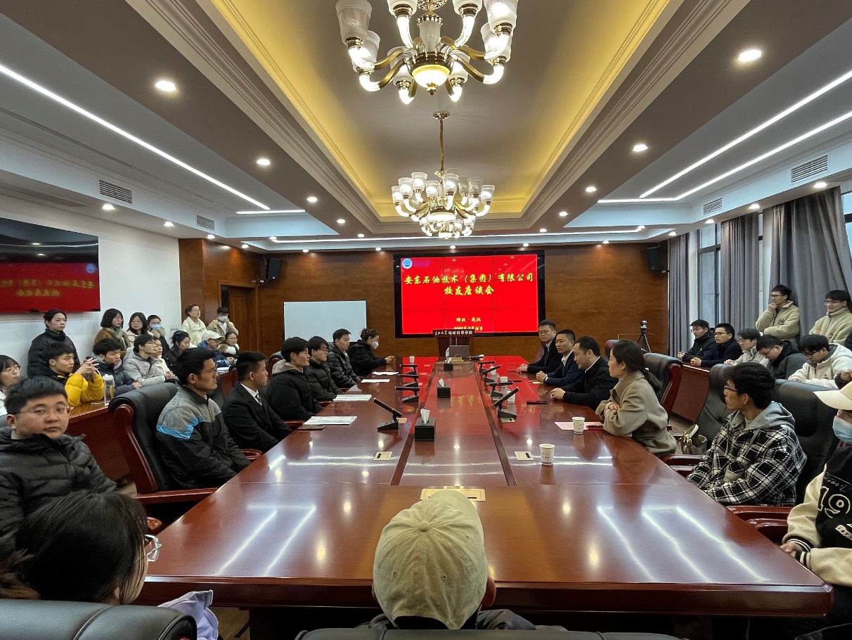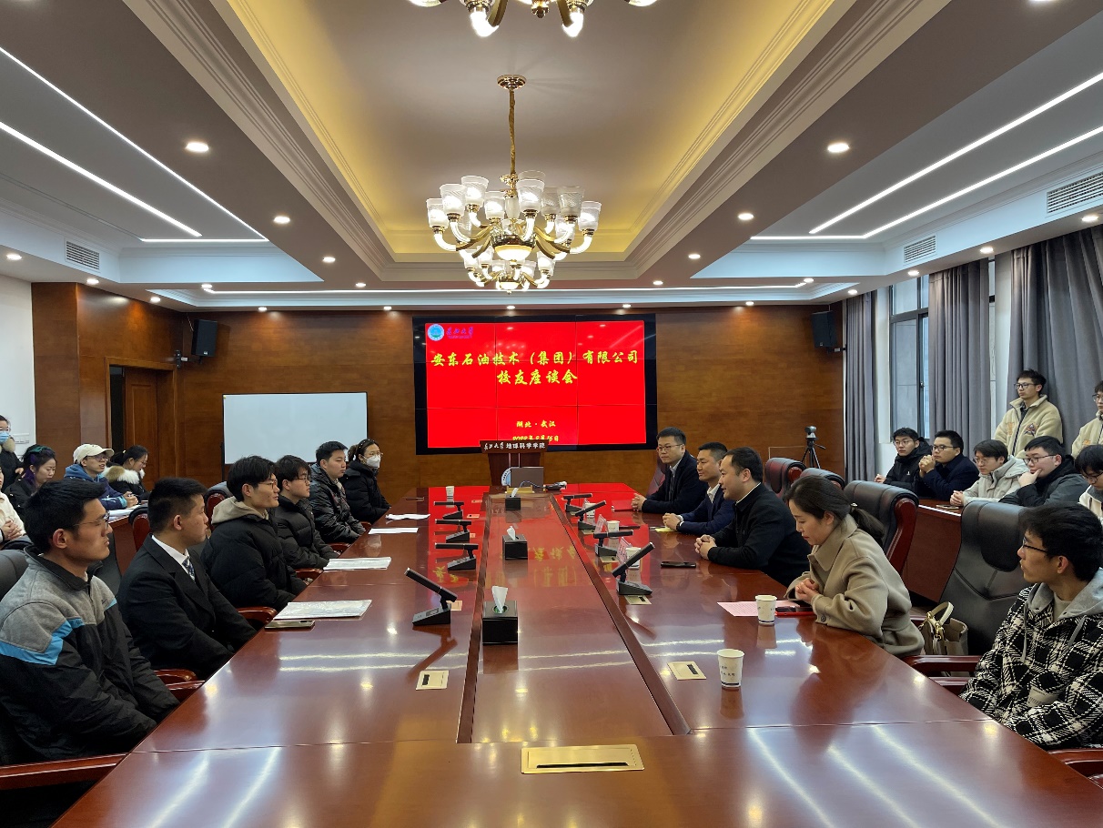 2月16日下午4时30分,安东石油技术(集团)有限公司员工在石油科技大楼C201会议室与部分2023届毕业生进行座谈。