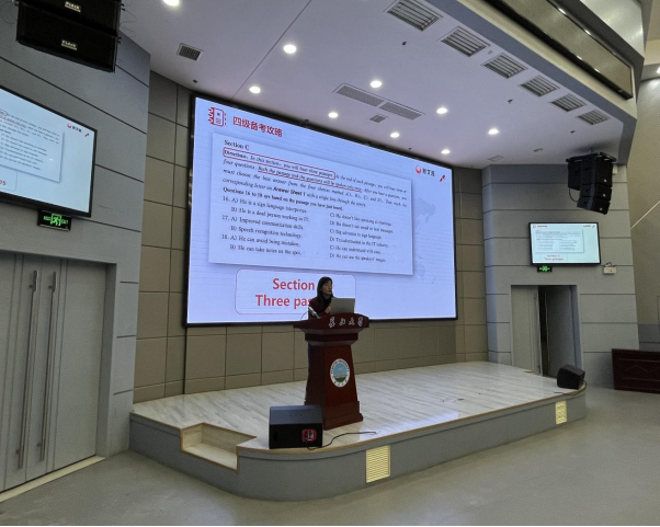 (通讯员 刘家玉)为提升公司2022级本科生英语四级听力水平,科学合理备考听力,掌握听力考试技巧,公司于3月20日晚18:30,在402永利集团武汉校区学术报告厅举行了英语四级听力技巧专题讲座,讲座由新文道英语名师段依莎主讲,学工办姚佳、黄瑱以及357名本科生全员参会。