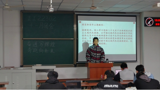 (通讯员郭霖杨时凯)为深入学习贯彻党的二十大精神及团十九大精神,落实向广大团员和青年开展学习贯彻习近平新时代中国特色社会主义思想主题教育的效果,公司各团支部开展了11月主题教育实践活动,各年级辅导员与高年级团员骨干每人对接一个团支部,与大家一起学习、交流、讨论。本月的示范团支部是资工22302团支部,由团支书肖昆明同学主讲,资工22302班全体员工参与。