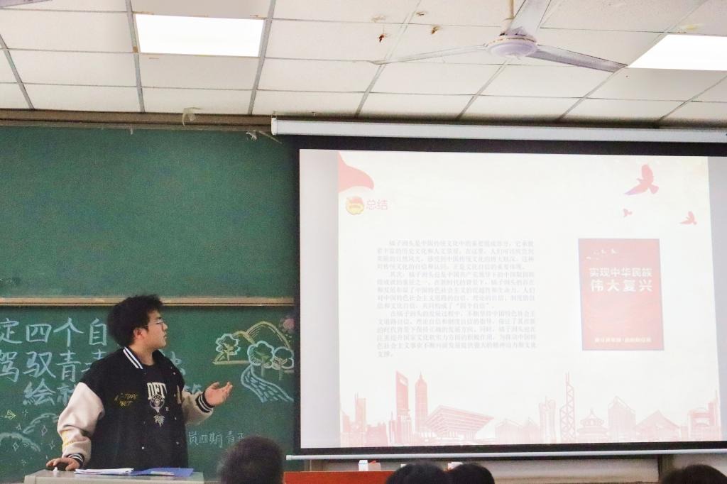 来自东北黑土地的关梅堃同学展示了她参观东北烈士纪念馆、刘少奇革命遗址、哈尔滨烈士陵园等地的照片,一座座红色地标,记录着催人奋进的革命故事,也彰显着红色文化的世代传承。点点星火,凝聚无限力量。白山黑水,燃起抗日烽火。朱永康介绍了家乡无产阶级革命战士闻一多先生的事迹,语言生动、情感真挚,令人动容。曹莹心则自信大方地向大家展示了家乡淄博的传统文化,从美食到手工艺品,从戏曲到古建筑。同时淄博也是去年火出圈的“网红城市”,她热情地欢迎大家来到热情、好客、纯朴、大气的山东淄博。