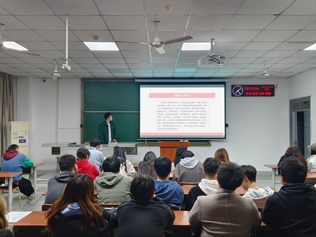 随后,周志成同学在发言中提到,我们应牢记习近平总书记在多次讲话中重点强调的“必须坚持人民至上”。中国共产党人的初心和使命,就是为中国人民谋幸福,为中华民族谋复兴。人民是历史的创造者,群众是真正的英雄,人民群众是我们共产党力量的源泉。我们党来自人民、植根人民、服务人民,党的根基在人民、血脉在人民、力量在人民。失去了人民拥护和支持,党的事业和工作就无从谈起。在任何时候任何情况下,与人民同呼吸共命运的立场不能变,全心全意为人民服务的宗旨不能忘,群众是真正英雄的历史唯物主义观点不能丢,始终坚持立党为公、执政为民。道阻且长,行则将至。前进道路上,无论是风高浪急还是惊涛骇浪,人民永远是我们最坚实的依托、最强大的底气。我们要始终与人民风雨同舟、与人民心心相印,想人民之所想,行人民之所嘱,不断把人民对美好生活的向往变为现实。