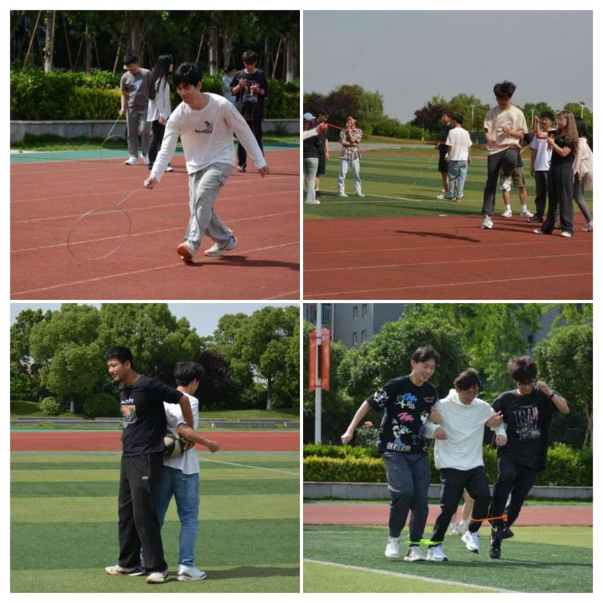 本次趣味运动会共设有五个项目,包括五人跳大绳,三人四足,双龙戏珠、滚铁环和趣味跳绳,这些项目既考验个人的体能与技巧,又强调团队协作的重要性。活动现场气氛热烈,欢声笑语不断,同学们在轻松愉快的氛围中尽享运动的乐趣。