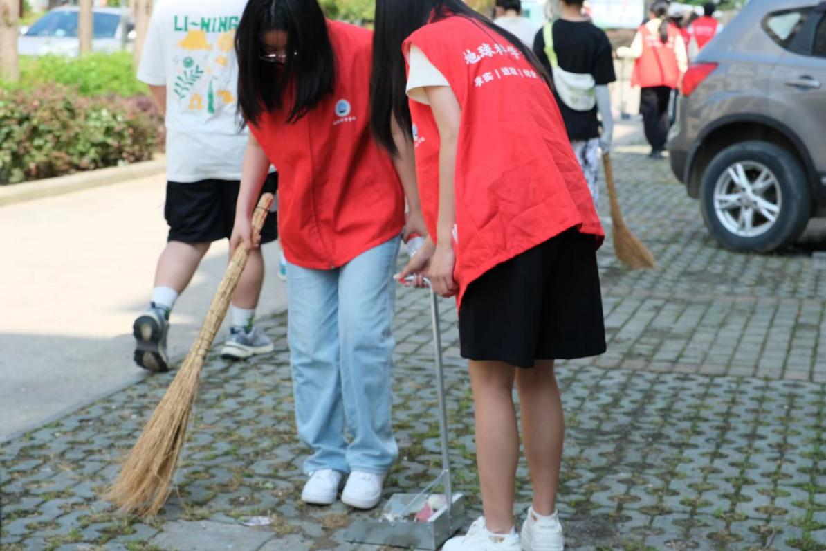 清扫过程中,志愿者们充分发挥团结协作的精神,分工明确,配合默契。大家手持扫把、垃圾袋等工具,对社区内的道路、绿化带、公共休闲区等进行了全面而细致的清扫。道路两侧的垃圾杂物被一一捡起,绿化带内的落叶杂草得到了有效清理,公共休闲区的设施也被擦拭得干净整洁。同时,大家还积极向社区居民宣传环保理念,倡导绿色生活方式,引导居民共同参与到社区环境维护中来。志愿者陈一鸣说:“通过本次活动,我不仅提高了自己的动手能力,为未来的工作和生活打下坚实的基础,还深刻地认识到劳动的价值和意义,能更好的理解和尊重其他劳动者,为构建和谐社会贡献自己的力量。”