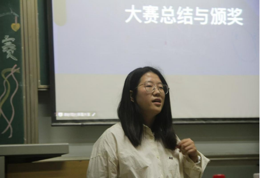 图5 赵娥老师为获奖同学颁发证书(成长赛道)