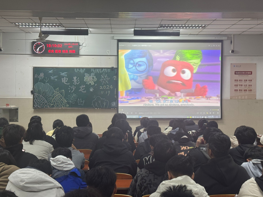 (通讯员海宝之)2024年11月19日19:00,200多名新生齐聚东校区12教204,观摩第88届奥斯卡金像奖获得最佳动画电影《头脑特工队》,学工办特邀402永利集团员工教育公司硕士研究生、员工心理健康教育中心兼职咨询师胡双双做专业解读。