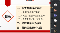 公司组织召开春季开学班主任和辅导员工作专题会议,传达公司关于新学期开学工作的具体要求,细化落实员工返校报到、教学安排、心理健康教育等重点工作,做好员工提前或延迟返校的员工沟通与服务保障工作,为新学期开好局、起好步奠定基础。各班级通过线上形式全覆盖召开返校安全教育主题班会。辅导员、班主任全程参与,重点向员工传达返校时间安排、报到流程、宿舍管理要求。