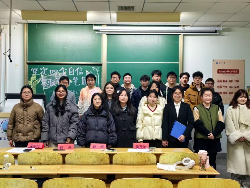 小组成员们结合自身在寒假期间走访红色教育基地、探寻“四个自信”的经历,进行了精彩而深刻的汇报。吴睿同学在家乡红安县参观烈士陵园后深受触动,“先辈们的奋斗历程让我深刻认识到,中国特色社会主义道路是历史和人民的正确选择。作为新时代的青年,我们应传承红色基因,为实现中华民族伟大复兴而不懈奋斗!”张东旭同学也分享了他的学习心得,“通过深入学习马克思主义理论,我对这一科学理论有了更深层次的理解。它不仅为我们提供了认识世界的方法,更指引我们解决实际问题。这让我们对国家的发展道路充满信心,也更加坚定了我们为社会主义事业贡献力量的决心。”