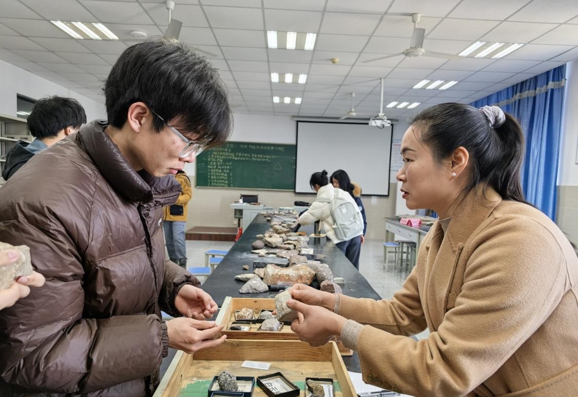 (通讯员 邢佰诗 刘佳琪/摄)3月17日9时,武汉校区实验楼A403室举办了“青年导师说”第九期:矿物岩石鉴定分享会。