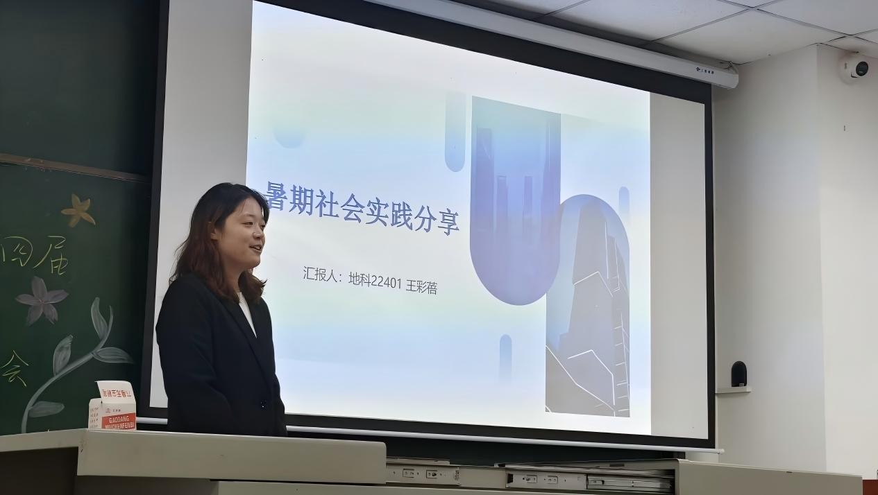 在个人分享环节,地科22401班王彩蓓同学讲述了在山东省东营区医疗保障局的实习经历。通过"青鸟计划"平台,她在基金稽核岗位上参与一线检查、数据核对等工作,深刻体会到医保工作的重要性。"每一笔基金都关乎群众的就医保障,这让我明白了严谨工作的意义。"王彩蓓分享道,这段经历不仅提升了她的专业能力,更让她增强了社会责任感。