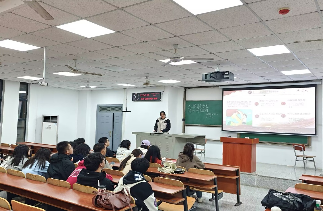 活动开始,团支部书记介绍活动背景、目的及流程,强调“汇聚青春力量,同心共筑家园”主题团会的重大意义。接着带领团员学习习近平总书记在庆祝中华人民共和国成立76周年招待会上的讲话、《求是》杂志相关文章等内容,各小组围绕“国家发展与青年责任”展开研讨,团员代表结合专业分享感悟,深化对中华民族共同体的理解。地产22401班倪浩然同学说:“作为新时代青年,我们要将个人理想融入到国家发展之中,学好本专业,担当起新时代的责任”。