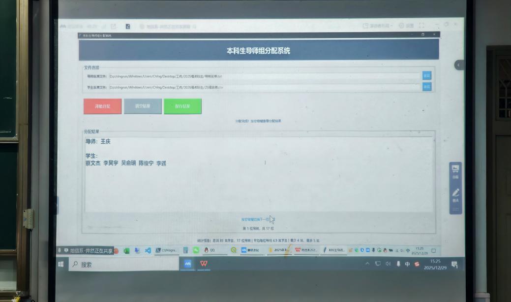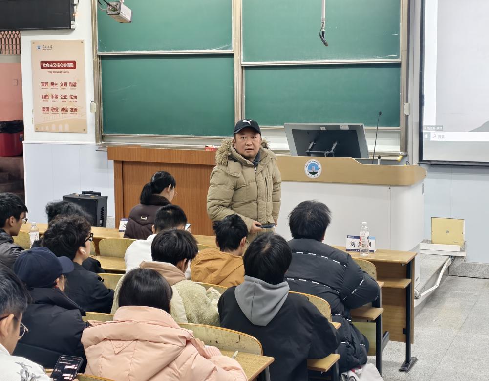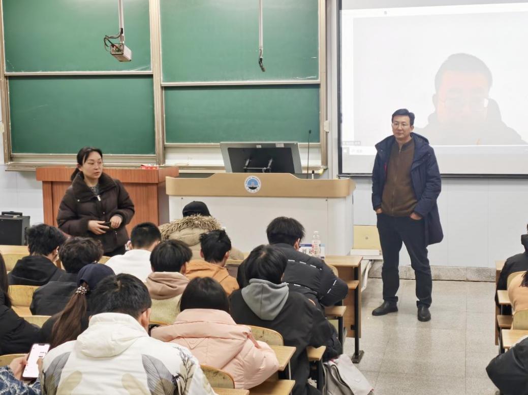 刘老师介绍了“导师组”启动会的目的与意义。随后,他现场连线武汉校区的各位导师,老师们虽远在异地,仍通过视频亲切表达了对员工们的深切关怀与期望。接着,井然老师详细介绍了导师分配的总体方案、人员调整机制及后续工作安排,并现场使用导师分配系统,顺利为全系同学完成导师匹配。最后,陈华军老师与崔海福老师分别结合自身经验,就学业规划、学习方法、科研实践参与等方面向同学们提供了具体建议,鼓励大家积极与导师沟通,夯实专业基础,提升综合能力。