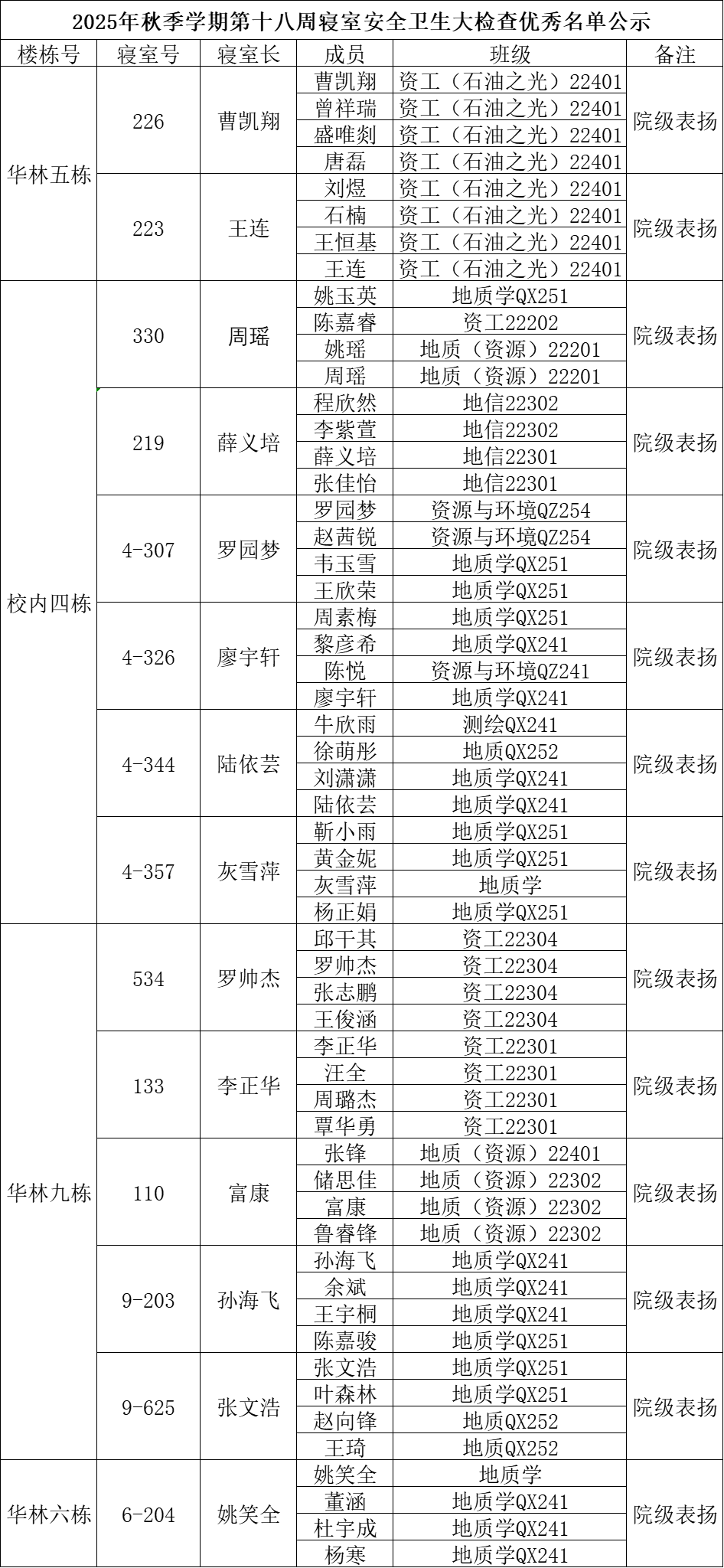 一、通报优秀寝室