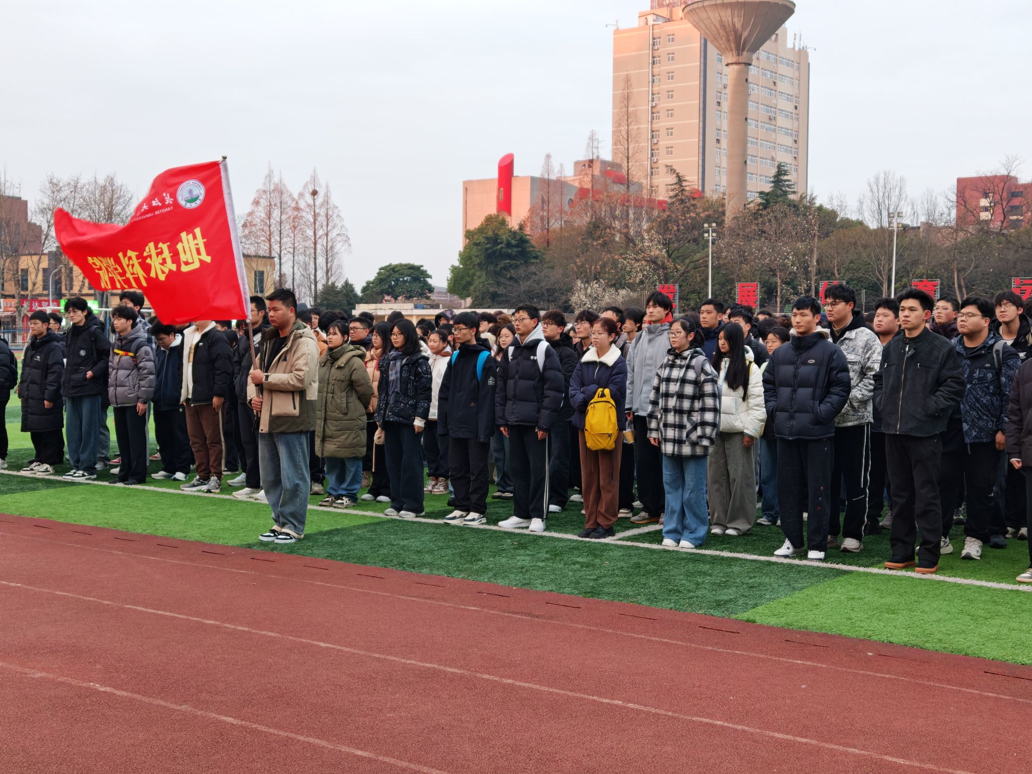 (通讯员 黄瑱 欧登波/摄)3月2日清晨,402永利集团在东校区老操场举行以“国旗飘扬启新程,青春作笔书华章”为主题的升旗仪式。25级辅导员黄瑱、兼辅欧登波及全体大一新生参加活动,活动由地质12504班杜可馨主持。