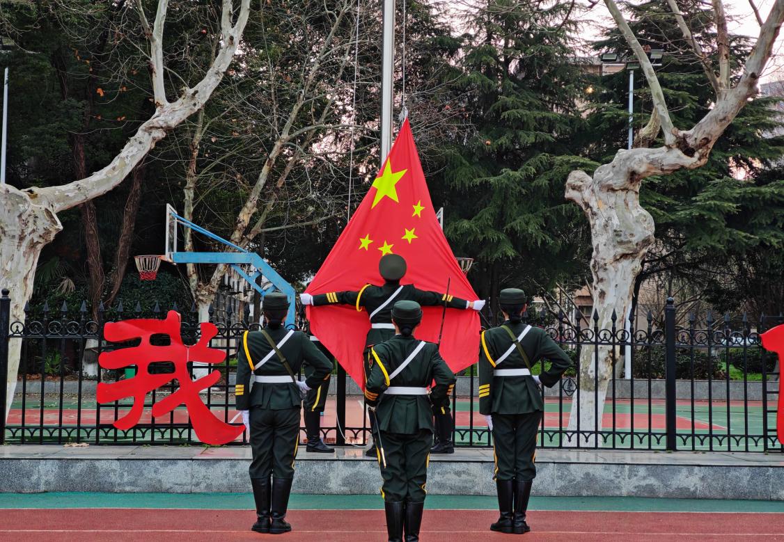 全体师生在国歌的铿锵韵律中,注视着五星红旗冉冉升起,开启了新学期新征程。