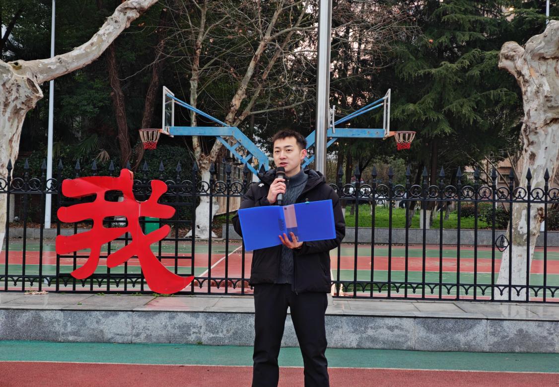 辅导员黄瑱作题为《收心归位再出发,稳扎稳打向未来》主题讲话。他肯定了同学们上学期的优良表现,提到“立足新学期起点,当收心归位,从被动适应走向主动驾驭,在学业深化中攻克道道难关,在生活取舍间找准前行方向。”同时,面对即将到来的“分化期”,鼓励同学们以定力抵御诱惑,以韧性坚守初心,珍惜时间,不负韶华、奋力拼搏。