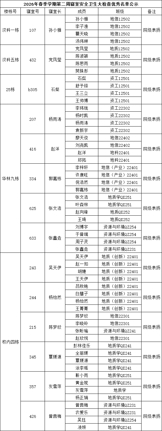 一、通报优秀寝室