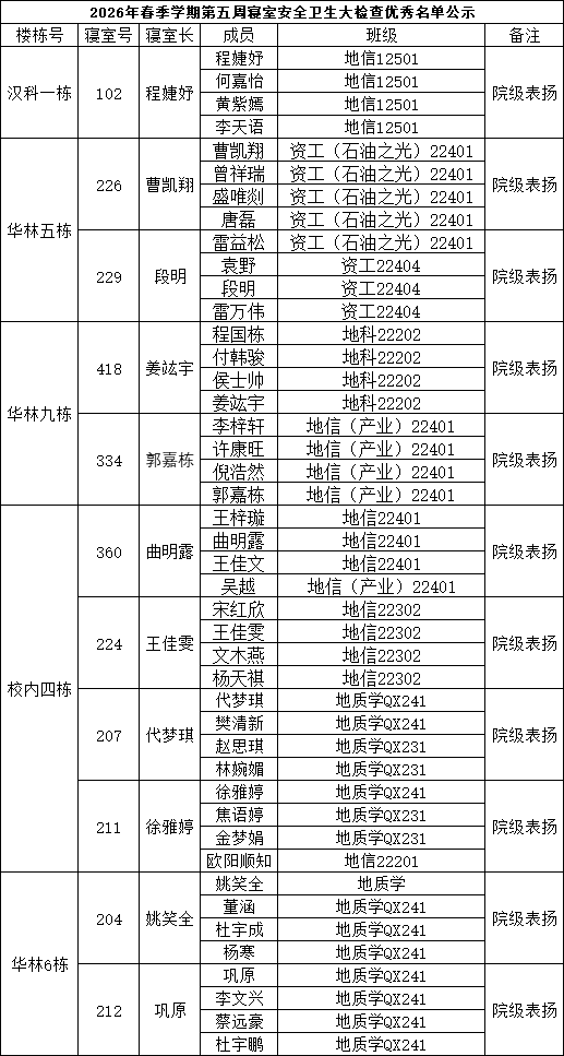 一、通报优秀寝室