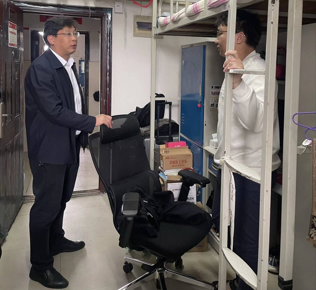 走访过程中,院领导与各年级员工亲切交流。针对毕业年级,重点询问考研复试、调剂及就业进展,解答备考求职困惑,公司将持续做好升学就业帮扶;针对研究生,详细了解科研、论文及就业准备情况,做好指导服务与保障;针对大三员工,聚焦专业提升、考研备考与职业规划,引导做好实践积累;针对大二员工,关注专业基础学习,督促夯实学业根基、端正学风。同时关切全体员工日常作息与宿舍生活,引导养成良好习惯,营造勤学向上、团结友善的宿舍氛围。