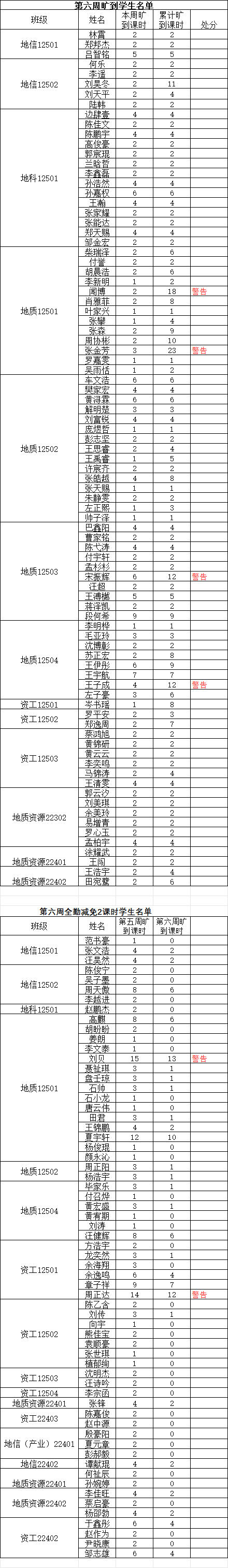 1. 旷课达到12学时,给予警告处分;
