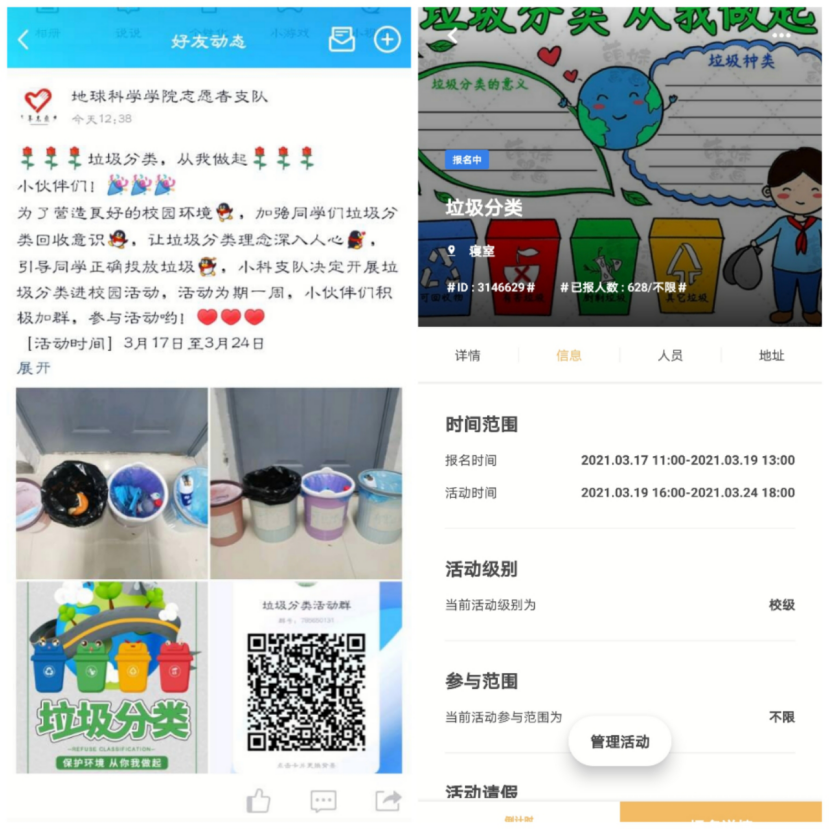 3月17日开始,公司地科院实践部各成员开始着手策划“垃圾分类”活动。3月18日实践部成员在地科院官Q上宣发此次活动,并在到梦空间发布活动,动员员工积极参与。
