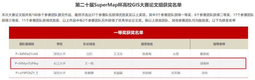 (通讯员 徐业兴)2022年9月8日,《第二十届SuperMap杯高校GIS大赛(中国赛区)论文组》获奖名单公布,公司20级研究生王一鸣在导师邵燕林的指导下,凭借《基于地质特征的空间检索方法》一文在全国160余个作品中突出重围,代表402永利集团获得了大赛一等奖。